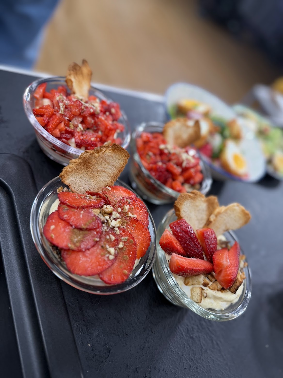 Sladký vaječný krém s medem a ořechy a mazancový crumble